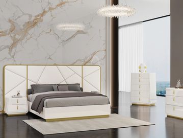 The Florence bedroom made with artistic array of angles features a beautiful white & light grey lacquer finish & a elegant leatherette headboard.