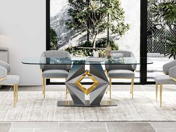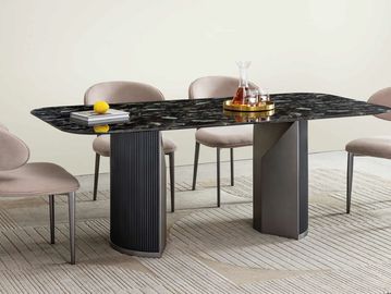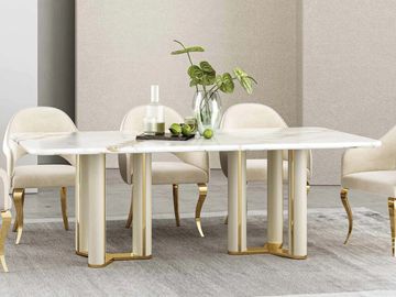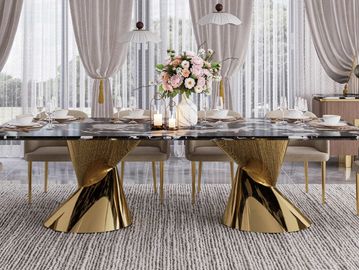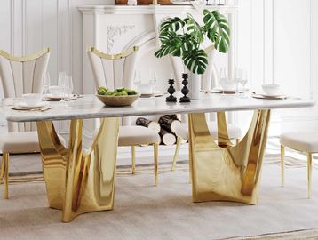 Modern Dining Table with Marble Top & Stainless Steel Pedestal Rectangle