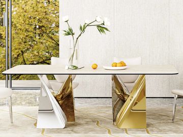 Elegant extended ceramic top dining table.
