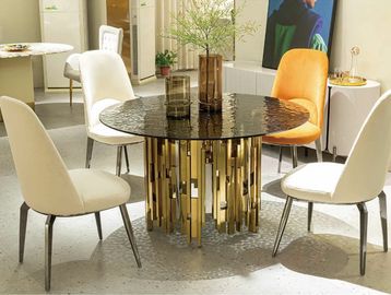 White Round Stone-top Dining Table Golden Stainless Steel Frame Pedestal Dining Table