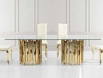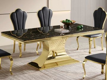 79" Contemporary Gold Dining Table in Gold for 8 Seaters with Stone Top
